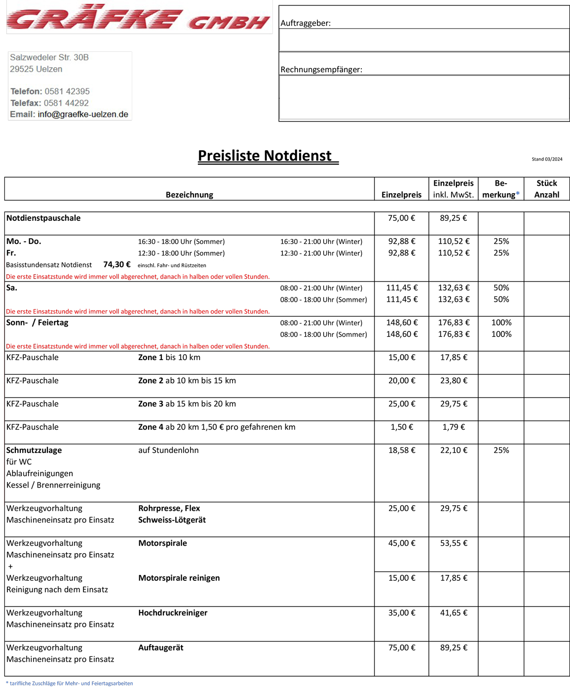 Auftragspauschale je Notdiensteinsatz EUR 75,00